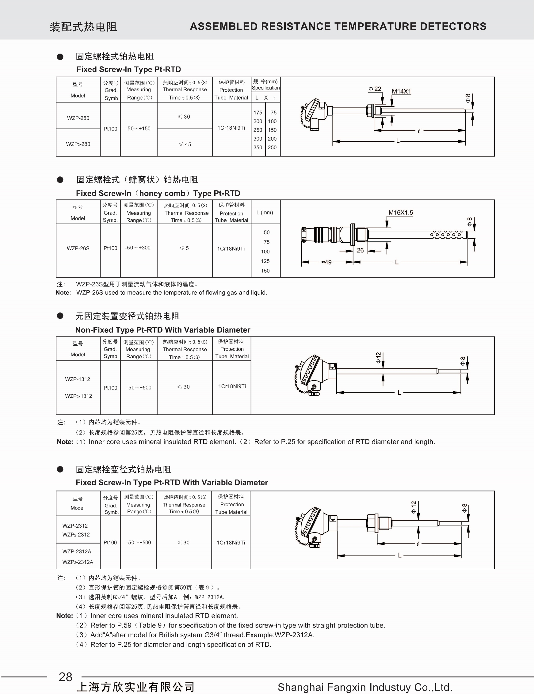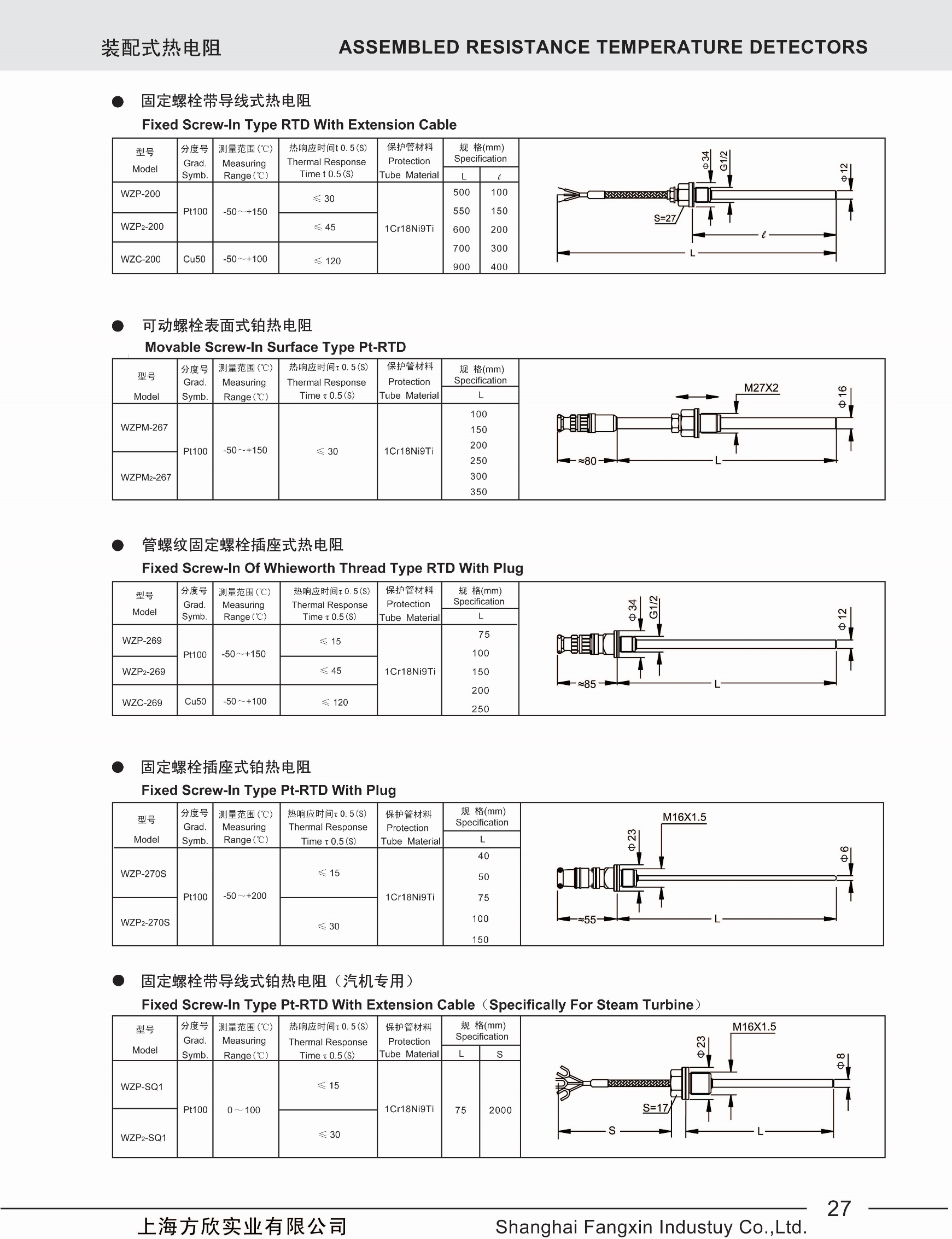 锅炉炉壁、管壁铠装热电偶、热电阻